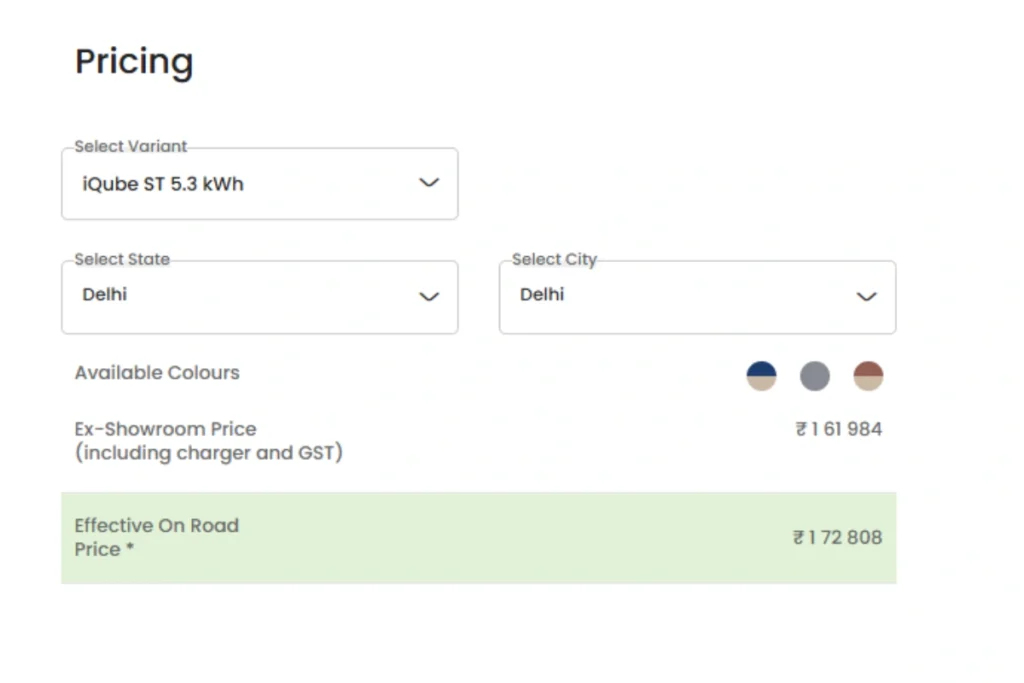 दो पहिया वाहन कंपनी ने बताया है कि 2025 टीवीएस आईक्यूब इलेक्ट्रिक स्कूटर का प्राइस 161984 रुपये एक्सशोरूम दिल्ली है। यह दाम आईक्यूब एसटी 5.3kWh बैटरी वेरिएंट का निर्धारित किया गया है।
