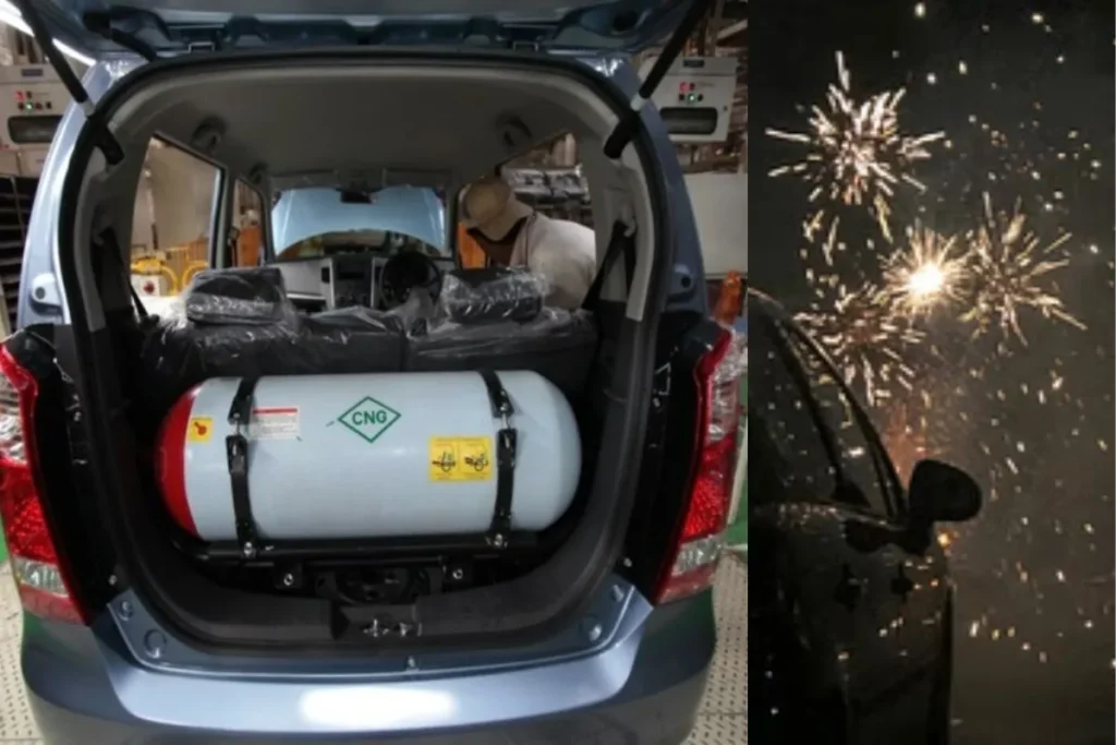 CNG Car: देशभर में दिवाली का त्योहार मनाया जाएगा। ऐसे में काफी जगहों पर पटाखे फोड़े जाते हैं। अगर आप भी ऐसी जगह पर रहते हैं, जहां पर पटाखे फोड़े जाते हैं तो आपको अपनी कार का खास ध्यान रखना होता है। पटाखे फोड़ने वाले की जरा सी लापरवाही आपकी कार को नुकसान पहुंचा सकती है। वो भी खासकर सीएनजी कार। जी हां सीएनजी कार के लिए पटाखे की एक चिंगारी धमाका या फिर जलाने के लिए काफी होत है। ऐसे में आपको कुछ विशेष बातों का ध्यान रखना होगा, जिससे आप अपनी गाड़ी को सुरक्षित रख सकते हैं।