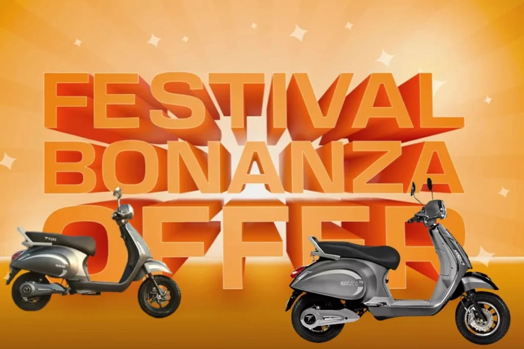 Electric Scooter: Pure EV ने दिवाली पर ऑफर्स की घोषणा कर दी है। इलेक्ट्रिक दोपहिया वाहन निर्माता ने रैफरेल स्कीम और एक्सचेंज बोनस देने की घोषणा की है। कंपनी की साइट पर एक पोस्टर साझा किया गया है। जिसमें इन ऑफर्स के बारे में बताया गया है। जो ऑफर मिल रहे हैं, उनमें से एक फेस्टिवल बोनांजा ऑफर (Festival Bonanza Offer) भी है। जिसके तहत ग्राहक इस कंपनी की बाइक या इलेक्ट्रिक स्कूटर खरीदने पर कई तरह के ऑफर्स का लाभ ले सकते हैं। इसके तहत क्या ऑफर्स दिए गए हैं। सभी के बारे में आपको यहां जानकारी मिलने वाली है।