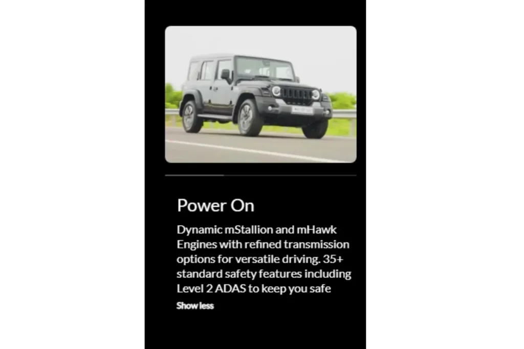 वहीं, अगर Mahindra Thar Roxx 2025 के स्टाइल की बात करें, तो इसमें फ्रंट पर 6 स्लॉट ग्रिल, सी शेप में DRLs और प्रोजेक्टर LED हेडलैंप और ऑवरऑल लुक बॉक्सी डिजाइन जैसा नजर आता है। कंपनी ने इसमें फुल मैटल ब्लैक रुफ और पैनॉरमिक सनरुफी की सुविधा भी शामिल की है। थ्री डोर वाली इस एसयूवी के केबिन में काफी क्लासी और आकर्षक इंटीरियर देखने को मिलता है। इसके साथ वेंटिलेटिड फ्रंट सीट्स, वायरलेस चार्जिंग के साथ एप्पल कार प्ले, एंड्रॉयड ऑटो, 10.25 इंच का इंफोटेनमेंट सिस्टम, 10.25 इंच का डिजिटल इंस्ट्रूमेंट कलस्टर और रियर एसी वेंट्स दिए गए हैं। इस एसयूवी में सेफ्टी के लिए 360 डिग्री कैमरा, लेवल-2 ADAS के साथ 35 से अधिक सेफ्टी खूबियां जोड़ी गई हैं।