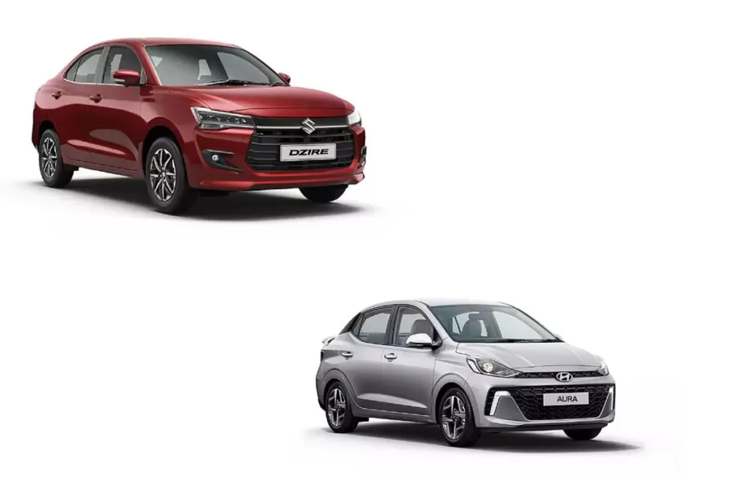 Maruti Suzuki Dzire vs Hyundai Aura: मारुति सुजुकी ने 11 नवंबर को अपनी चौथी जनरेशन वाली Maruti Suzuki Dzire 2024 को लॉन्च किया है। ये गाड़ी पुरानी सेडान Dzire से बिल्कुल अलग है। इसका लुक और इंटीरियर बदल दिया गया है। इसके साथ ही सेफ्टी में इस कार को 5 स्टार की रेटिंग मिली हुई है। 2024 Maruti Suzuki Dzire Price 6.79 से लेकर 10.14 लाख तक एक्स है। ये गाड़ी LXI, VXI, ZXI, और ZXI+ जैसे 4 वेरियंट में आती है। खास बात ये ही कि, इस सेगमेंट में कंपनी ने सेडान में इलेक्ट्रिक सनरुफ भी दिया है। इस गाड़ी का मुकाबला इसी बजट में पहले से ही मार्केट में मौजूद Hyundai Aura सेडान से है। Hyundai Aura Price 6.49 लाख से लेकर 9.05 लाख तक है। ये इस गाड़ी की ऑफ रोड कीमत है। दोनों की एक्स शोरुम कीमत में मात्र 30 हजार का फर्क है। आज हम आपको इन दोनों गाड़ियों के माइलेज से लेकर फीचर्स तक के सभी अंतरों के बारे में बताने जा रहे हैं।