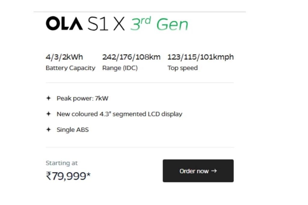 Ola S1 X Gen 3 का कितना है एक्सशोरूम दाम
