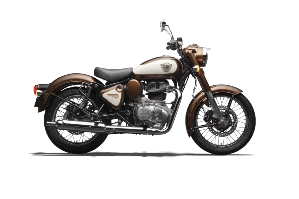 अगर आप इस धनतेरस और दिवाली पर रॉयल एनफील्ड की किसी स्टाइलिश बाइक को खरीदना चाहते हैं, तो क्लासिक 350 काफी बढ़िया विकल्प है। इसमें कंपनी ने रेट्रोल लुक के साथ आइकॉनिक टियरड्रॉप फ्यूल टैंक, गहरा फेंडर और हेडलाइट के साथ सिंगल टोन से लेकर प्रीमियम टोन देखने को मिलता है। यही वजह है कि काफी बाइक राइडर इस मोटरसाइकिल को खरीदना पसंद करते हैं। कंपनी ने इसमें 7 कलर्स शामिल किए हैं। इसमें एमराल्ड, जोधपुर ब्लू, कमांडो सैंड, मद्रास रेड, मेडेलियन ब्रॉन्ज़, सैंड ग्रे और स्टील्थ ब्लैक।