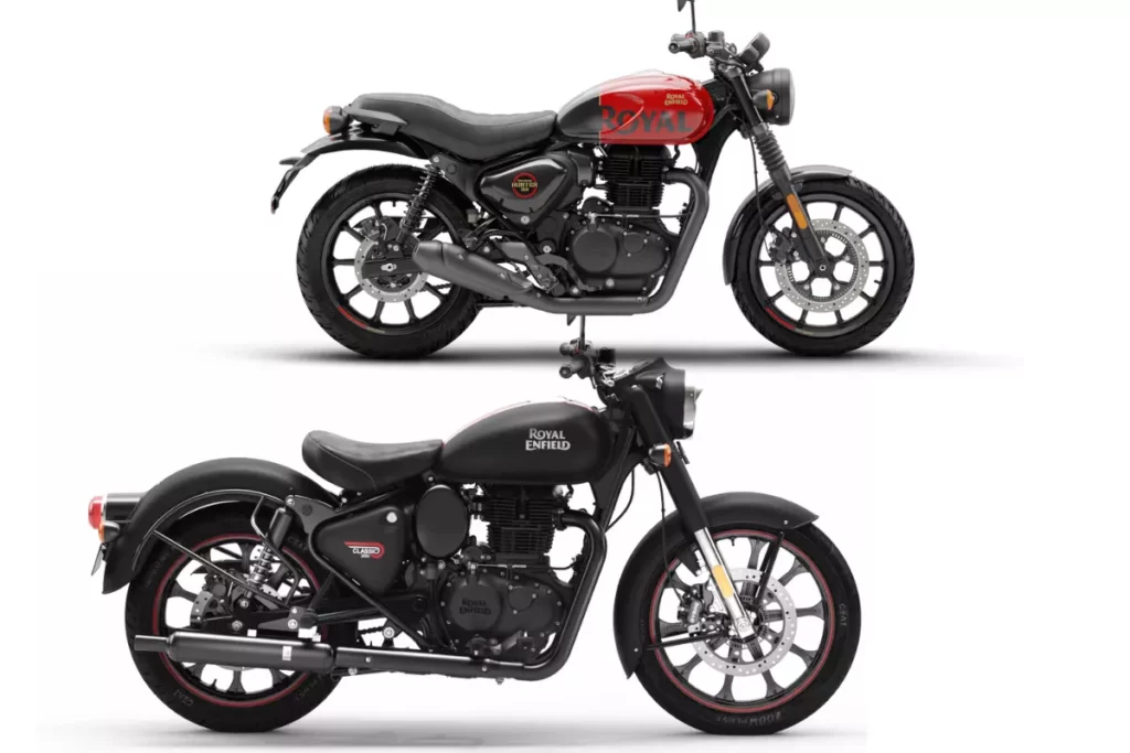 Royal Enfield: बाइक लवर्स को Royal Enfield की बुलेट काफी ज्यादा पसंद आती हैं। इन बाइकों का लुक बेहद शानदार और धाकड़ होता है। इसके साथ ही इसका इंजन भी जबरदस्त होता है। Royal Enfield की बाइक इतनी मजबूत होती हैं कि उन्हें पहाड़ों पर भी लेकर जाया जा सकता है। ऐसे में कंपनी ने Royal Enfield की बहुत सी गाड़ियां लॉन्च कीं। बहुत सी बाइक बाजारों में आईं और कई चली गईं लेकिन कंपनी की दो बाइक ऐसी हैं जिनका दबदबा अभी भी बरकरार है औऱ ये अभी भी लोगों को काफी पसंद आ रही हैं। इन बाइकों का नाम Royal Enfield Classic 350 और Royal Enfield Hunter 350 हैं।