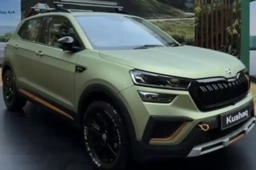 इस कार में Blacked-out front grille, blacked-out ORVMs, auxiliary LED lights roof rack और front bumper जैसी नई चीजों को डाला गया है। इसे मैट ग्रीन कलर में पेश किया गया है। इतना ही नहीं इसे ऑल-ब्लैक अलॉय व्हील्स पर ऑफ-रोड टायर्स मिल रहे हैं। ये Kushaq कार से काफी मिलती-जुलती है। इसे सबसे अलग इसके पीछे का अल्ट्रा माइल 44 ऑल-टेरेन बुल ऑफ-रोड स्पेक टायर और ऑरेंज कलर के टो-हुक बनाते हैं।