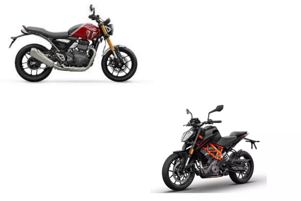 Triumph Speed 400 vs KTM 390 Duke: भारतीय मोटरसाइकिल मार्केट में हाई क्षमता वाली बाइक की आज भी काफी डिमांड है। यही वजह है कि ट्रायंफ से लेकर हार्ले डेविडसन तक ने अपनी शानदार बाइक्स को लॉन्च किया है। ऐसे में अगर आप भी किसी सुपर बाइक की तलाश कर रहे हैं तो इस खबर से आपको मदद मिल सकती है। इसमें दो बाइक ट्रॉयंफ स्पीड 400 और केटीएम 390 ड्यूक (Triumph Speed 400 vs KTM 390 Duke) के बीच में अंतर जानेंगे।