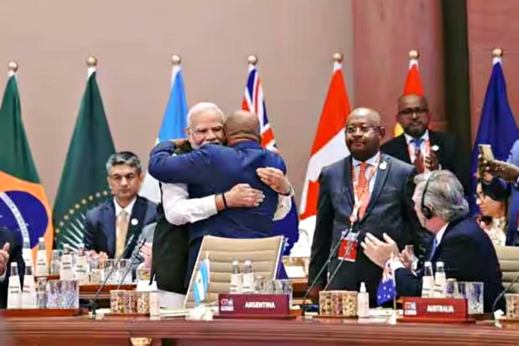 अफ्रीकन यूनियन (AU) को स्थाई सदस्यता का ऐलान करते हुए PM Modi ने कहा, “हमने प्रस्ताव रखा था कि अफ्रीकन यूनियन को जी 20 की स्थायी सदस्यता दी जाए। विश्वास है कि इसमें आप सबकी सहमति है। आप सबकी सहमति से आगे की कार्रवाई शुरू करने से पहले अफ्रीकन यूनियन को सदस्य के रूप में आमंत्रित करता हूं।” इस दौरान PM मोदी ने गले लगाकर अफ्रीकी संघ (African Union) के अध्यक्ष अजाली असौमानी का स्वागत किया, जिसके बाद उन्होंने अपना स्थान ग्रहण किया।