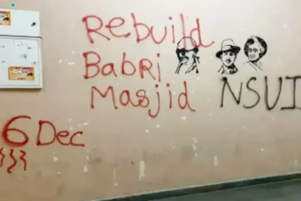 Ayodhya Ram Mandir: उत्तर प्रदेश के अयोध्या में प्रभु श्रीराम लला के भव्य मंदिर का निर्माण किया जा रहा है। राम मंदिर में प्राण प्रतिष्ठा समारोह के लिए 22 जनवरी 2024 की तारीख का ऐलान भी कर दिया गया है। इससे पूर्व राम मंदिर को लेकर अलग बहस का दौर शुरू है। दरअसल राजधानी दिल्ली में स्थित देश के प्रतिष्ठित शिक्षण संस्थान जवाहरलाल नेहरू यूनिवर्सिटी (JNU) की दीवारों पर बाबरी मस्जिद निर्माण से जुड़े स्लोगन लिखे पड़े हैं। इसके तहत लिखा गया है कि Rebuild Babri Masjid 6 दिसंबर और साथ ही एनएसयूआई के नाम का भी जिक्र है। इस मामले के सामने आने के साथ ही एक अलग किस्म की सुर्खियां बननी शुरू हो गई है। हालाकि इस प्रसंग में एनएसयूआई की ओर से आधिकारिक बयान जारी कर इसे संगठन को बदनाम करने की साजिश करार दिया गया है।