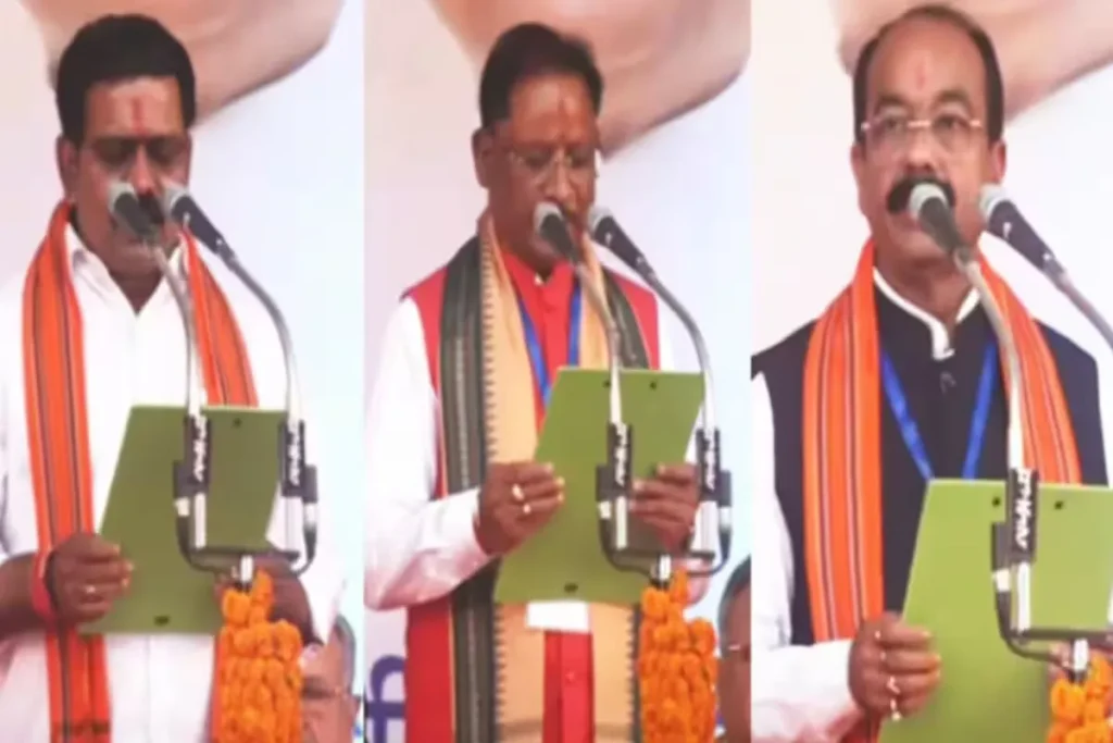 Chhattisgarh BJP New CM : विष्णु देव साय बनें छत्तीसगढ़ के नए मुख्यमंत्री, अरुण साव और विजय शर्मा ने ली डिप्टी सीएम की शपथ
