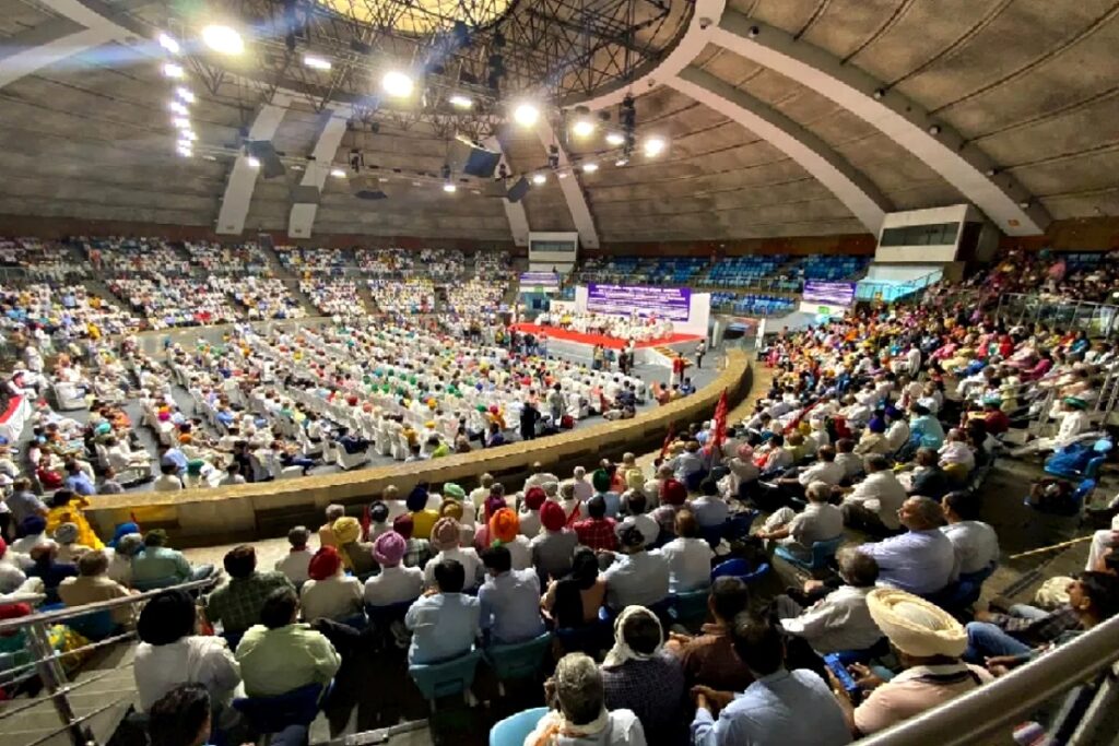 गुरुवार (24 अगस्त) को दिल्ली के तालकटोरा स्टेडियम में किसान मोर्चा और मजदूर संगठनों की एक बैड़ी बैठक हुई है। बैठक में हिस्सा लेने के लिए देशभर से हजारों की संख्या में किसान दिल्ली पहुंचे थे। इस दौरान किसान नेताओं ने आगामी रणनीति तैयार की और केंद्र सरकार पर जमकर निशाना साधा।