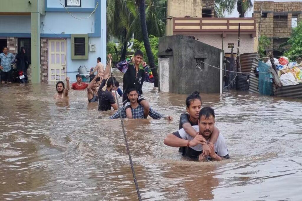 Gujarat Flood: देश के ज्यादातर राज्यों में मानसून ने दस्तक दे दी है। ऐसे में पिछले कुछ समय से लगातार बारिश की वजह से उत्तर भारत के राज्य जैसे हिमाचल प्रदेश, उत्तराखंड और दिल्ली में बारिश ने तांडव मचा दिया। इसी कड़ी में आपको बता दें कि, गुजरात में भी लगातार बारिश की वजह से तबाही मची हुई है। दरअसल पिछले कुछ समय से गुजरात के दक्षिण और सौराष्ट्र क्षेत्र में भारी बारिश हो रही है जिसके चलते कई जिलों में बाढ़ जैसी स्थिति पैदा हो गई है।