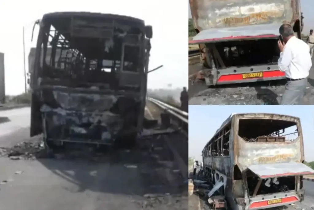 Haryana News: हरियाणा के नूह शहर में एक भीषण सड़क हादसा हो गया जिसके कारण गुरुग्राम समेत आसपास के इलाके में सनसनी मच गई। दरअसल नूंह के पास KMP (कुंडली, मानेसर, पलवल) एक्सप्रेसवे पर अज्ञात कारणों से एक बस में आग लग गई