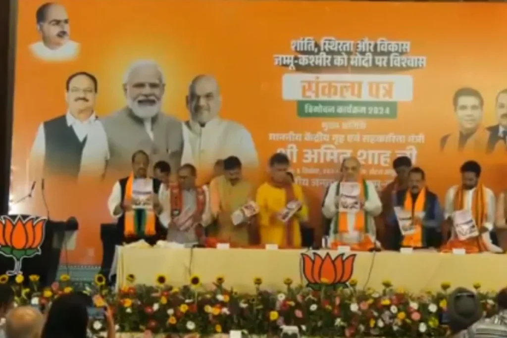 J&K Assembly Election 2024: केंद्रीय गृह मंत्री अमित शाह ने J&K Assembly Election 2024 के लिए भाजपा का घोषणापत्र जारी किया। जम्मू-कश्मीर बीजेपी प्रमुख रविंदर रैना और पार्टी के अन्य नेता भी मौजूद रहे। मालूम हो कि जम्मू कश्मीर में 3 चरणों में विधानसभा चुनाव होने है। वहीं इसके नतीजे 8 अक्टूबर 2024 को आएंगे। इस दौरान केंद्रीय गृह मंत्री अमित शाह ने घोषणापत्र जारी किया। संकल्प पत्र जारी करने के बाद शाह ने विपक्ष पर जमकर हमला बोला।