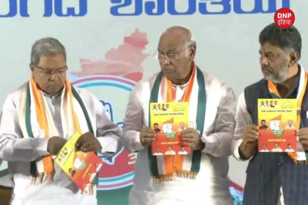 Karnataka Election 2023: कर्नाटक विधानसभा चुनाव 2023 के लिए मतदान में करीब एक सप्ताह का समय बचा है। प्रदेश के 224 विधानसभा सीटों पर 10 मई को मतदान होना है। इससे पहले राजनीतिक दल सत्ता में आने के लिए एड़ी-चोटी तक का जोर लगा रही है। इसी बीच भाजपा के बाद अब कांग्रेस ने भी अपना घोषणा पत्र जारी कर दिया है। कांग्रेस ने आज यानी मंगलवार को अपने मैनिफेस्टो जारी किया है। इस दौरान कांग्रेस अध्यक्ष मल्लिकार्जुन खड़गे, प्रदेश कांग्रेस अध्यक्ष डीके शिवकुमार और पूर्व मुख्यमंत्री सिद्धारमैया सहित कई कांग्रेस के प्रमुख नेता मौजूद रहे।