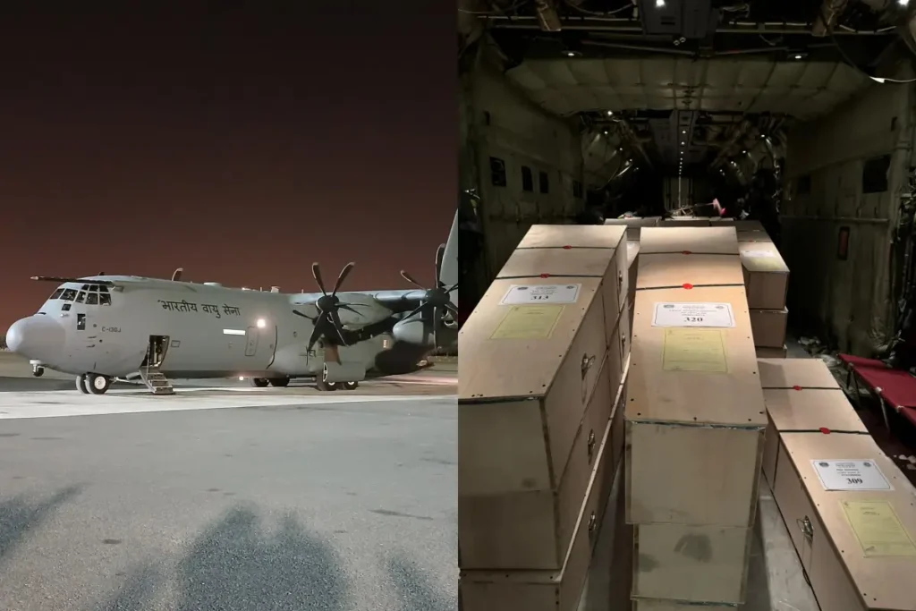 भारतीय विदेश मंत्रायल की तत्परता व वायु सेना के प्रयासों से कुवैत अग्निकांड में मारे गए सभी 45 भारतीयों के सव को कोच्चि एयरपोर्ट लाया गया है।