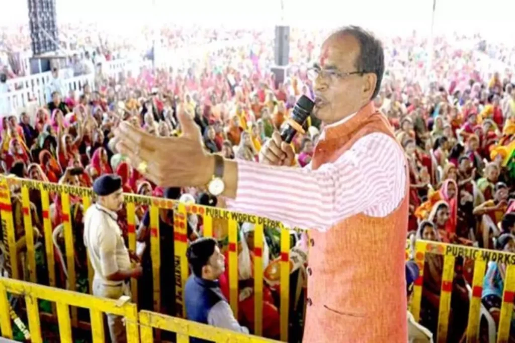 MP Ladli Behna Yojana: एमपी के सीएम शिवराज सिंह चौहान (Shivraj Singh Chouhan) कल 4 अप्रैल 2023 को ‘मुख्यमंत्री लाडली बहना योजना’ (Mukhyamantri Ladli Behna Yojana) की बंपर सफलता से उत्साहित खंडवा जिले में मंच पर ही गाना गाने लगे। उन्होंने बताया कि एमपी में महिलाओं के आर्थिक सशक्तिकरण के लिए लाई गई इस योजना को भारी सफलता मिली है। योजना का पंजीकरण कराने वाली महिलाओं की संख्या का आंकड़ा 50 लाख तक पहुंच गया है। करीब 1 लाख की संख्या में जनसभा में आई महिलाओं को संबोधित करते हुए MP Ladli Behna Yojana के लिए सीएम शिवराज सिंह ने मंच से ही गाना शुरू कर दिया। “फूलों का तारों का सबका कहना है,एक हजारों में मेरी बहना है”