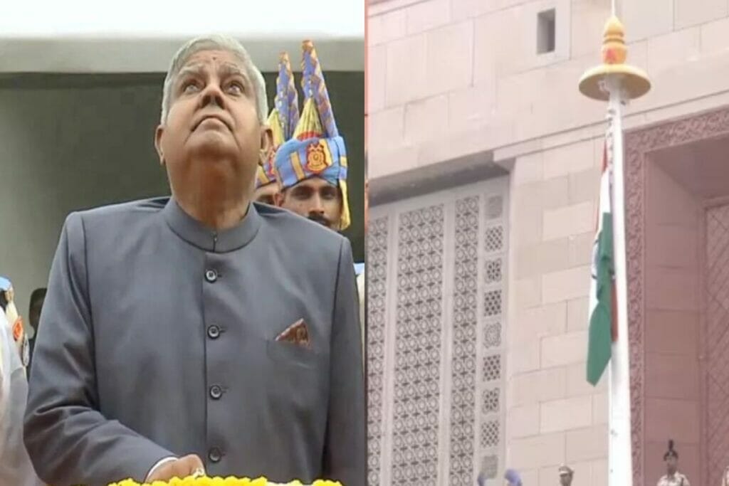 New Parliament Building: देश की नई संसद में आज 17 सितंबर रविवार को राष्ट्रीय ध्वज को स्थापित किया गया। इस दौरान देश के उपराष्ट्रपति और राज्यसभा के सभापति जगदीप धनखड़ ने नई संसद (New Parliament Building) के गज द्वार पर ध्वजारोहण किया। इस अवसर पर उनके साथ लोकसभा अध्यक्ष ओम बिरला और कांग्रेस संसदीय दल के नेता अधीर रंजन चौधरी समेत कई नेता मौजूद रहे।