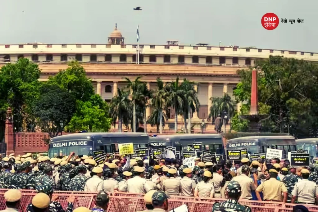 आज बुधवार को 16 विपक्षी दलों के नेताओं ने अडानी मामले में ईडी को ज्ञापन देने के लिए संसद भवन (Parliament Budget Session) से मार्च निकाला। लेकिन विपक्षी नेताओं को पुलिस ने विजय चौक पर ही रोक लिया। मार्च को देखते हुए पुलिस ने विजय चौक पर पहले से ही बैरिकेडिंग लगा रखे थे। वहीं, विपक्षी दलों के नेताओं के इस मार्च में तृणमूल कांग्रेस के नेताओं ने हिस्सा नहीं लिया। TMC के नेताओं ने संसद भवन परिसर में ही प्रदर्शन किया।