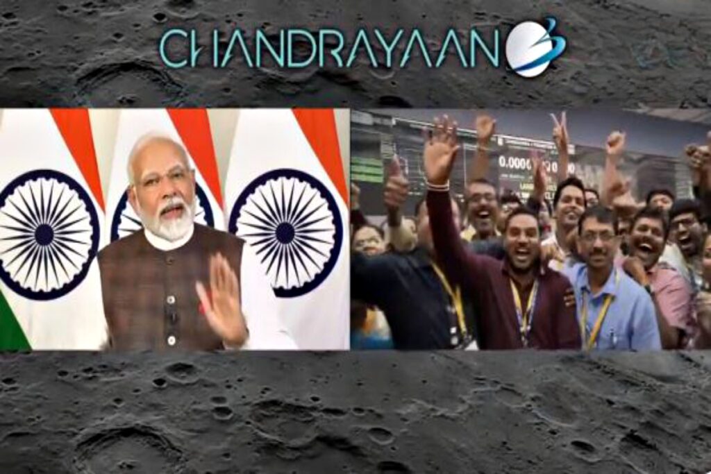PM ने इस पल को ऐतिहासिक क्षण बताया। उन्होंने ISRO के तीसरे चंद्र मिशन चंद्रयान-3 की चंद्रमा पर सॉफ्ट लैंडिंग पर कहा, “जब हम ऐसे ऐतिहासिक क्षण देखते हैं तो हमें बहुत गर्व होता है। यह नए भारत की सुबह है।”