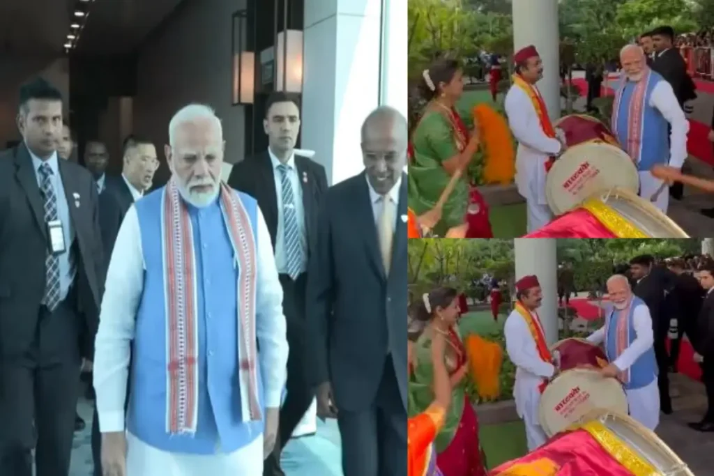 PM Modi Singapore Visit: भारत के प्रधानमंत्री नरेन्द्र मोदी अपने ब्रुनेई दौरे के बाद अब दो दिवसीय सिंगापुर दौरे पर पहुंच चुके हैं। सिंगापुर दौरे का लक्ष्य दक्षिण पूर्वी एशियाई राष्ट्र के साथ रणनीतिक साझेदारी को और गहरा करना है। बता दें कि ब्रुनेई के बाद सिंगापुर दौरे पर पहुंचे पीएम नरेन्द्र मोदी ने सभी का ध्यान अपने खास अंदाज से आकर्षित किया और वे भारतीय समुदाय के लोगों संग ढोल बजाते नजर आए। सिंगापुर पहुंचे पीएम मोदी द्वारा ढोल बजाने का ये वीडियो सोशल मीडिया पर तेजी से वायरल है जिसे देख लोगों की खूब प्रतिक्रियाएं सामने आ रही हैं। (PM Modi Singapore Visit)