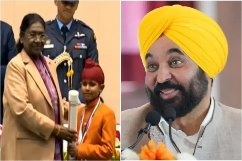 Veer Bal Diwas: फिरोजपुर वासियों के लिए आज का दिन बेहद खास है। दरअसल, आज वीर बाल दिवस के अवसर पर राष्ट्रपति द्रौपदी मुर्मू के हाथों फिरोजपुर वासी 10 वर्षीय श्रवण सिंह को सम्मानित किया गया है। इसको लेकर पूरे जनपद में हर्ष का माहौल है। सीएम भगवंत मान भी श्रवण सिंह की इस उपलब्धि को लेकर गदगद नजर आए हैं। पंजाब सीएम ने 10 वर्षीय श्रवण सिंह के देश के प्रति हौसले और जज्बे को सलाम करते हुए अपनी प्रतिक्रिया दी है। सीएम मान ने मासूम बच्चे की वीरता को प्रणाम करते हुए वीर बाल दिवस पर मिली उपलब्धि को सराहा है।