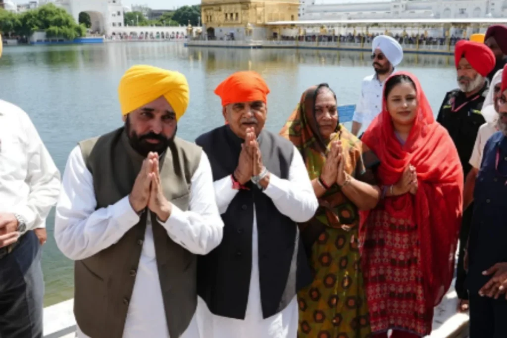 सीएम मान ने स्वर्ण मंदिर और दुर्गियाना मंदिर में प्रार्थना करने के बाद उन्होंने अपने एक्स हैंडल पर लिखा कि “आज श्री अमृतसर साहिब में राज्य के नवनियुक्त राज्यपाल ने माननीय गुलाब चंद कटारिया जी के साथ श्री दरबार साहिब और दुर्गियाना मंदिर में माथा टेका। गुरु चरणों में माथा टेका और सभी की भलाई के लिए प्रार्थना की, साथ ही जलियांवाला बाग में शहीदों को नमन किया। शहीदों की पवित्र भूमि की मिट्टी को माथे पर लगाया। उनके सपनों को पूरा करने के लिए जुनून, प्रेरणा और दृढ़ संकल्प की कामना की”।