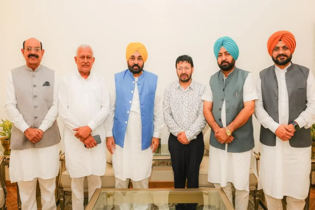 पंजाब कैबिनेट में शामिल नए मंत्रियों की मुख्यमंत्री भगवंत मान के साथ मुलाकात की तस्वीर उनके आधिकारिक एक्स हैंडल से जारी की गई है। सीएम मान के हैंडल से लिखा गया है कि “आज मैंने अपने आवास पर पंजाब कैबिनेट के नए सहयोगियों से मुलाकात की और उन सभी को उनकी नई जिम्मेदारियों के लिए बधाई दी। सभी से सरकार की कार्यप्रणाली पर विस्तार से चर्चा की और अपने-अपने विभाग की जनहितैषी योजनाओं से अधिक से अधिक लोगों को लाभान्वित करने को कहा।”