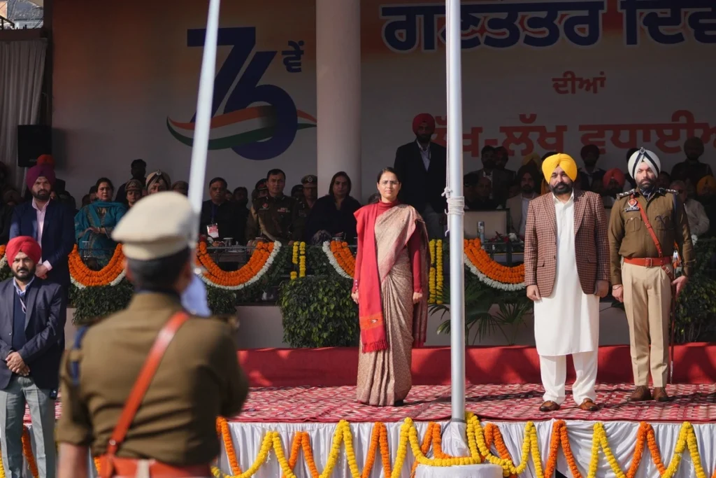आज यहां के पोलो ग्राउंड में 76वें गणतंत्र दिवस मौके समारोह दौरान राष्ट्रीय तिरंगा फहराने के बाद सभा को संबोधित करते हुए मुख्यमंत्री ने कहा कि पंजाब गुरुओं, पीरों-फकीरों, संतों-महापुरुषों और शहीदों की धरती है जो हमेशा भाईचारे और सांप्रदायिक सद्भावना की महान मूल्यों के लिए मानवता का मार्गदर्शन करती है। उन्होंने कहा कि राज्य में बहुत मेहनत से अमन-शांति हासिल की है और उनकी सरकार किसी को भी शांति भंग करने की इजाजत नहीं देगी। भगवंत सिंह मान ने इस नेक कार्य के लिए लोगों का सहयोग मांगा ताकि राज्य की शांति, तरक्की और खुशहाली को नुकसान पहुंचाने की साजिश रचने वाले दुश्मन को मुंहतोड़ जवाब दिया जा सके।