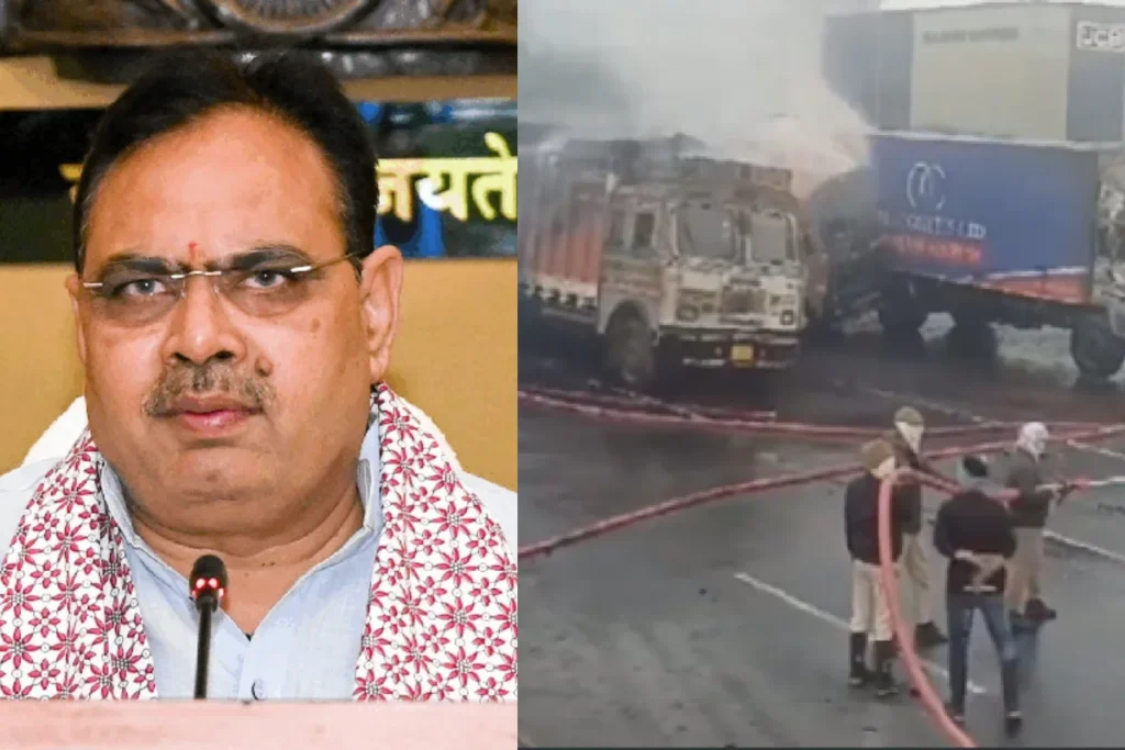 Jaipur News: जयपुर-अजमेर एक्सप्रेसवे पर आज भीषण हादसा हो गया है, जिसमे अभी तक 4 लोगों के मौत की खबर है। वहीं कई लोगों की हालत गंभीर बताई जा रही है। आपको बताते दें कि आज सुबह केमिकल से लदे एक ट्रक की कई गाड़ियों से भिड़त हो गई। जिसके बाद जोरदार विस्फोट हुआ। विस्फोटक इतना खतरनाक था कि इसकी चपेट में कई गाड़िया, बस आ गई। जानकारी के मुताबिक करीब 40 गाड़ियों में आग लग गई। आनन – फानन में सभी को अस्पताल में भर्ती कराया गया जहां कई लोगों की हालत गंभीर है, और इस हादसे में 4 लोगों के मौत की भी खबर है। वहीं प्रदेश के मुख्यमंत्री भजन लाल शर्मा ने घायलों से मुलाकात की, वहीं गृह मंत्री अमित शाह ने भी इस हादसे पर सीएम से फोन पर बात की और हालात का जायजा लिया।
