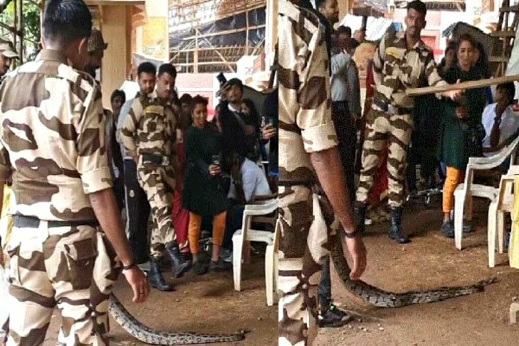 Mumbai Film City: मुंबई की फिल्म सिटी में इस वक्त एक बड़ी खबर सामने आ रही है। जानकारी के मुताबिक यहां एक सांप ने सैकड़ों अंडे दिए हैं। इस खबर के बाद से आसपास के क्षेत्र में दहशत का माहौल और लोग काफी डरे हुए हैं। इसका एक वीडियो भी सोशल मीडिया पर तेजी से वायरल हो रहा है। वायरल वीडियो में एक शख्स सांप को पकड़े हुए नजर आ रहा है। जबकि, आसपास वर्दी में कुछ जवान और लोगों की भीड़ लगी हुई है।