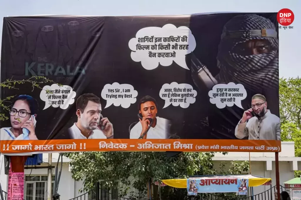 The Kerala Story Poster War: ‘द केरल स्टोरी’ को लेकर पूरे देश मे एक बार फिर दो खेमे बन गए हैं। एक भाजपा शासित राज्य तथा दूसरे भाजपा विरोधी राज्य फ़िल्म को लेकर आमने सामने आ गए हैं। इसी कड़ीं में पश्चिम बंगाल की सीएम ममता बनर्जी ने इस फिल्म को लेकर प्रतिबंधित कर दिया है। तो उत्तर प्रदेश तथा मध्यप्रदेश जैसे राज्यों में ‘द केरल स्टोरी’ The Kerala Story को टैक्स फ्री कर दिया गया है। तो यूपी में भाजपा मंत्री द्वारा इस फिल्म को लेकर लगाए गए पोस्टर ने राजनीतिक तापमान बढ़ा दिया है। तो वहीं असदुद्दीन ओवैसी ने भी ट्वीट कर पोस्टर पर तंज कस दिया है।