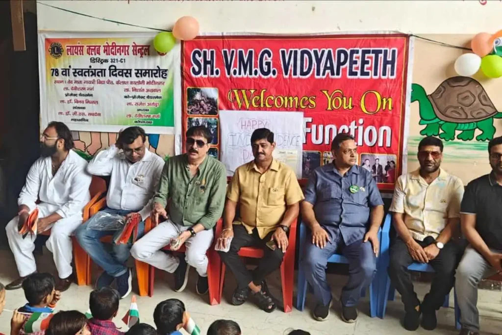 Lions Club Modinagar Central: लायंस क्लब मोदीनगर सेंट्रल द्वारा आजादी का 78वां स्वतंत्रता दिवस समारोह वेद माता गायत्री विद्यापीठ, कैलाश कॉलोनी, सीकरी, मोदीनगर के प्रांगण में बहुत ही हर्ष व उत्साह के साथ मनाया गया. इस अवसर पर बोलते हुए संस्था के अध्यक्ष राजेश अरोरा जी ने कहा कि, आज मुझे बेहद गर्व है कि मैं स्वतन्त्र देश में अपना जीवन जी रहा हूँ.. बच्चों के साथ समय बिताना मुझे बहुत पसंद है,इनकी मासूम सी मुस्कुराहट व इनकी आंखों से झांकती उत्सुकता मुझे बहुत खुशी देती है व मुझे अपने बचपन की यादों में ले जाती है. मेरे सभी लायन साथियों का धन्यवाद जिन्होंने मेरे साथ आज के उत्सव में देश के शहिदों को नमन करके उनकी याद में 2 मिनट याद करके उनको अपनी श्रद्धांजलि दी.इस अवसर पर ध्वजारोहण के पश्चात छोटे छोटे बच्चों ने देशभक्ति गीतों गाकर सभी उपस्थित लोगों को जोश से भर दिया….