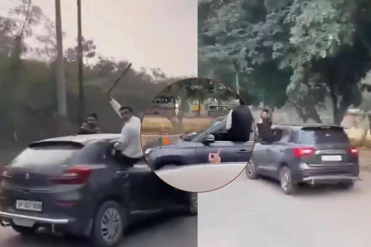 Greater Noida Viral Video में कॉलेज के पास गाड़ी में स्टंट कर रहे लड़के ने लहराए डंडे
