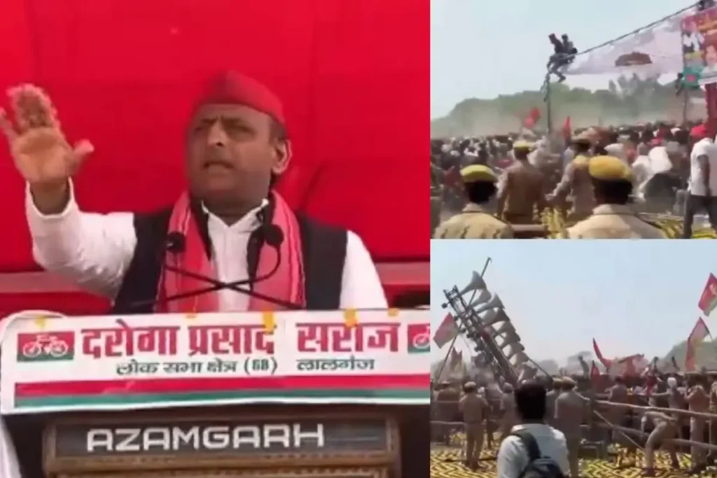 UP News: उत्तर प्रदेश की सबसे चर्चित लोक सभा सीटों में से एक आजमगढ़ लोक सभा सीट पर आज अद्भुत नजारा देखने को मिला। दरअसल सपा प्रमुख व यूपी के पूर्व सीएम अखिलेश यादव आज आजमगढ़ में लोक सभा सीट आजमगढ़ व लालगंज के लिए चुनावी प्रचार करने पहुंचे थे। इसी दौरान जनसभा में आई भीड़ अनियंत्रित हो गई और माहौल एकदम से भगदड़ मचने जैसा हो गया।