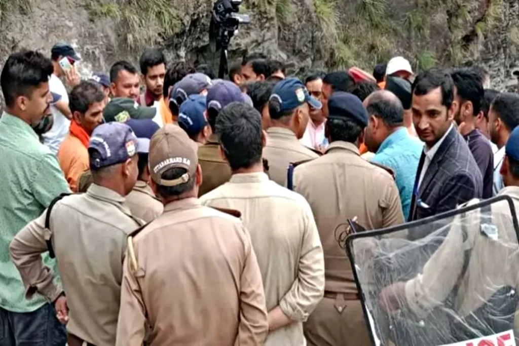 Uttarakhand News: उत्तराखंड के उत्तरकाशी जिले के पुरोला में होने वाली महापंचायत के स्थगित होने के बाद तनाव जारी है। यूं तो महापंचायत को रोकने के लिए पुलिस प्रशासन ने पुरी तैयारी कर रखी थी, बावजूद इसके कई व्यापारी और हिंदू संगठन के सदस्य पुरोला जाने पर अड़े हुए हैं। जिन्हें पुलिस ने नौगांव से एक किलोमीटर आगे रोक दिया है। फिलहाल, पुलिस लोगों को समझाने में जुटी हुई, लेकिन लोग यहां नारेबाजी कर रहे हैं। लोगों का कहना है कि उन्हें यहां से आगे जाने दिया जाए।