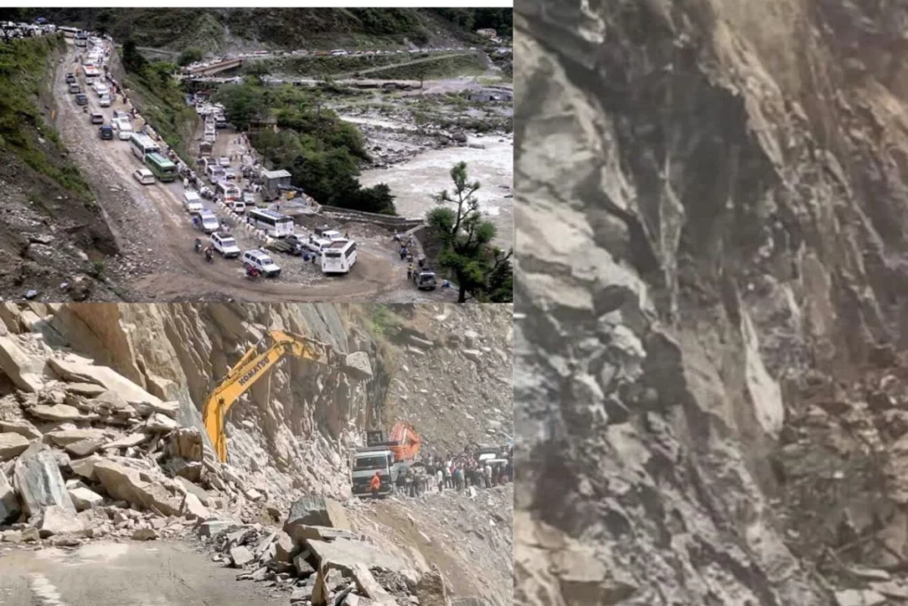 पहाड़ और मलबो के चलते रास्ते में हुआ जाम