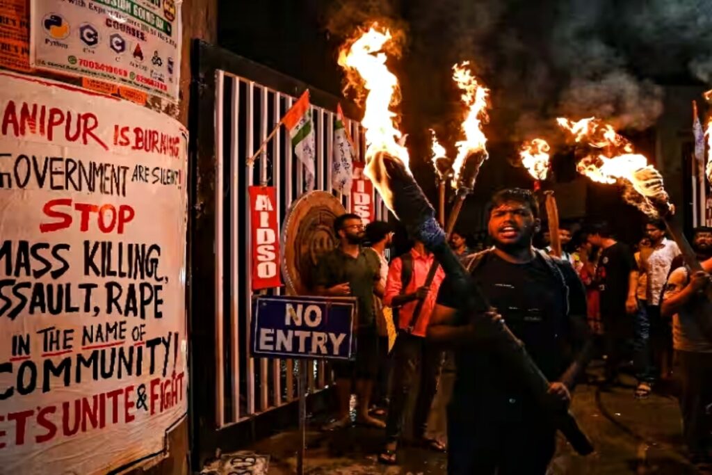 मणिपुर पुलिस ने बताया कि शुक्रवार देर रात बिष्णुपुर जिले में फिर हिंसा हुई है। यहां हिंसा के दौरान मैतेई समुदाय के तीन लोगों को हत्या कर दी गई। जबकि, कुकी समुदाय के कई घरों में आग लगा दी गई। पुलिस ने बताया कि उपद्रवी लगातार गोलीबारी कर रहे हैं, जिस वजह से उन्हें दिक्कतें पेश आ रही हैं।