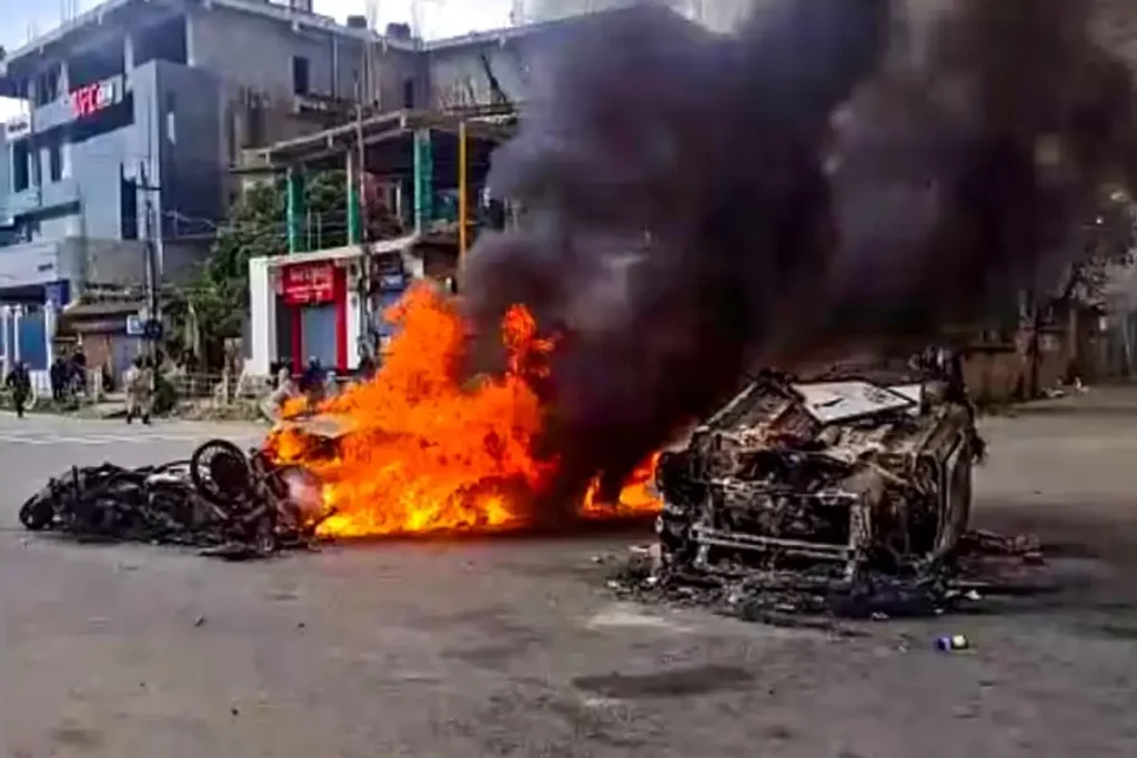 कई घरों में आगजनी और तोड़फोड़
