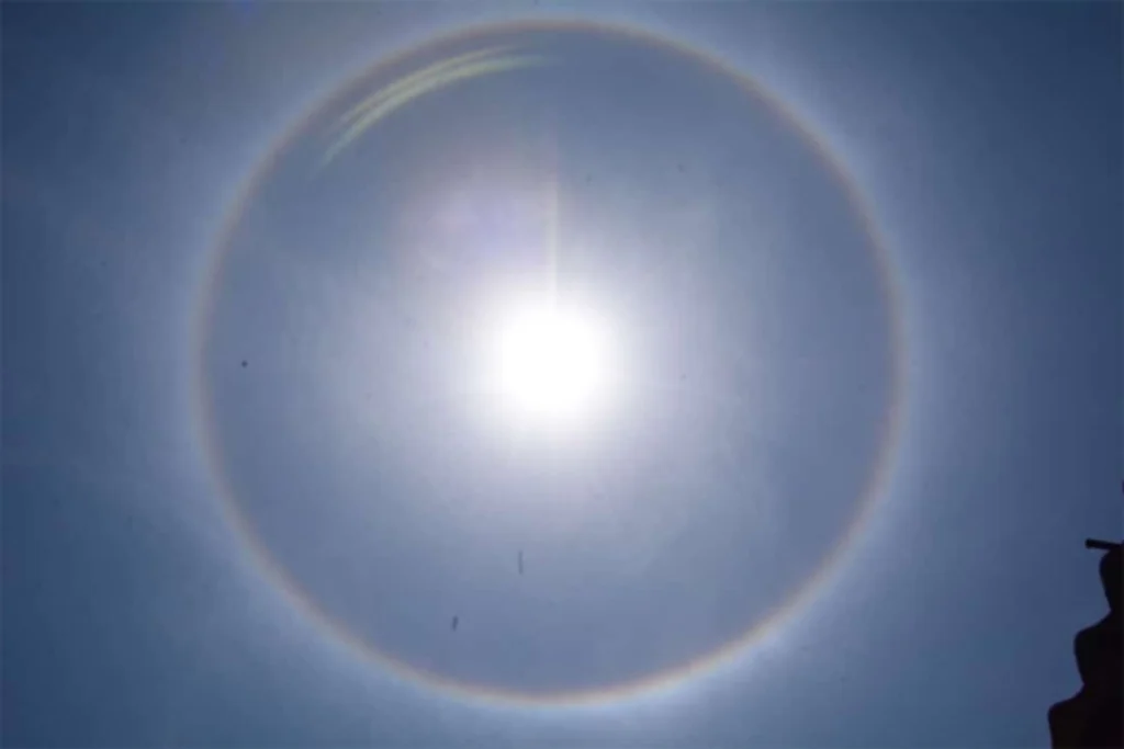 हमारे आसमान अक्सर अजीबो गरीब चीजें होती रहती हैं। कई बार हम इन्हें देख लेते हैं और कई बार यह कुछ समय के लिए होकर अपने आप खत्म हो जाती हैं। ऐसा ही एक नजारा शुक्रवार को प्रयागराज में देखने को मिला। यहां सूर्य के चारों तरफ रिंग के जैसा इंद्रधनुष बना हुआ था। इस नजारे के दिखाई देने के बाद लोगों ने इसे अपने कैमरे में कैद कर लिए और अब यह नजारा सोशल मीडिया पर भी खूब वायरल हो रहा है। प्रयागराज के लोगों ने इस नजारे के दिखाई देने के बाद कहा कि ऐसा उन्होंने आज से पहले कभी नहीं देखा।