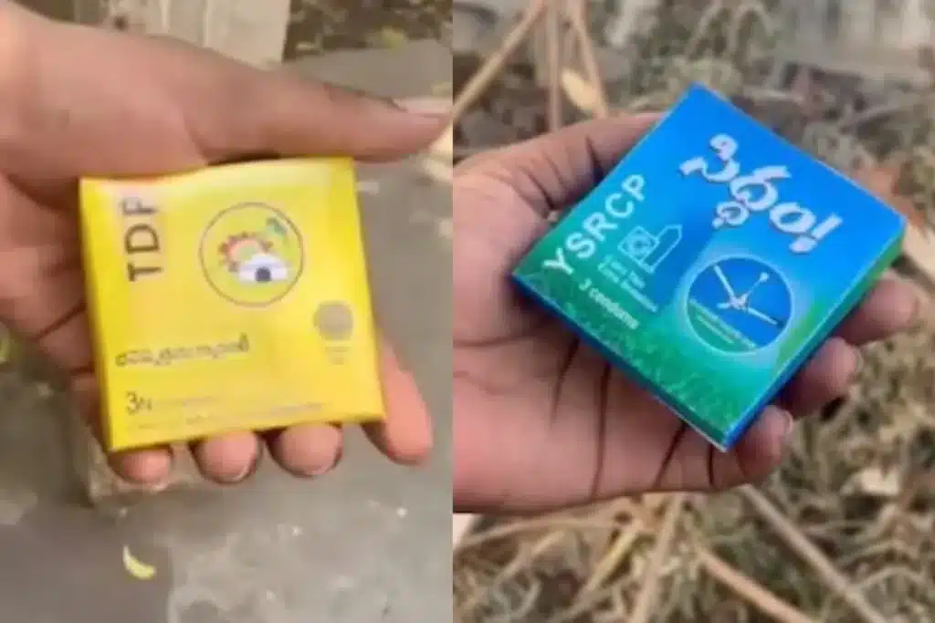 दरअसल सोशल मीडिया पर एक Viral Video में आंध्र प्रदेश में राजनीतिक पार्टियां जनता के बीच कंडोम बांटती नजर आ रही है। वहीं खास बात यह है कि इस मुद्दे को लेकर ये पार्टियां एक दूसरे की जमकर खिंचाई भी करते हुए दिखे हैं। दरअसल वाईएसआर कांग्रेस ने आधिकारिक एक्स अकाउंट से एक वीडियो शेयर किया जिसमें आप देख सकते हैं कंडोम के पैकेट पर टीडीपी पार्टी चिन्ह है और इस पर लिखा है कि क्या यह कंडोम के साथ बंद हो जाएगा या जनता को वियाग्रा वितरित करना भी शुरू कर देगा।