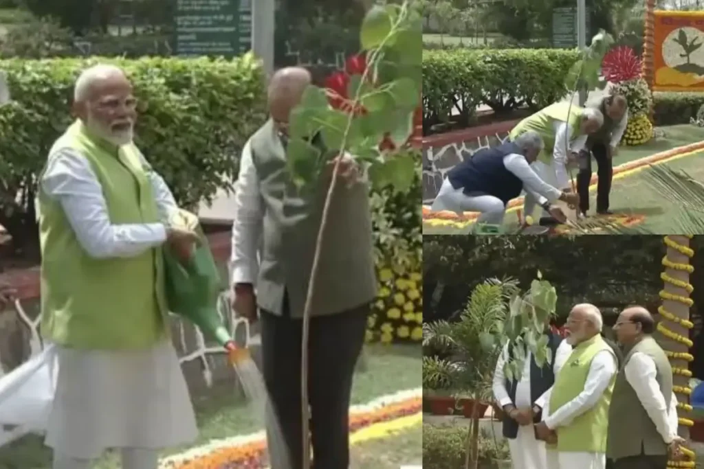 लोक सभा चुनाव 2024 के नतीजों के ऐलान होने के साथ ही पीएम मोदी आज संसदीय दल की बैठक से पहले राजधानी दिल्ली के बुद्धा जयंती पार्क पहुंचे। यहां पीएम ने आज विश्व पर्यावरण दिवस पर एक खास पहल के साथ वृक्षारोपण करने का काम किया है।