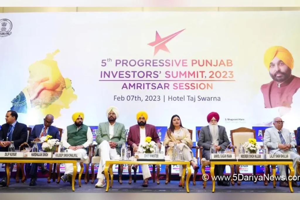 Progressive Punjab Investors summit 2023: पंजाब के मुख्यमंत्री भगवंत मान आज 7 फरवरी 2023 मंगलवार को अमृतसर पहुंच गए । UPGIS की तर्ज पर 23 और 24 फरवरी 2023 को मोहाली में होने वाली Progressive Punjab Investors summit 2023 के लिए इस समय सीएम मान लगातार अलग-अलग शहरों का दौरा कर रहे हैं और घरेलू निवेश आकर्षित करने के लिए निरंतर कारोबारियों को निमंत्रण दे रहे हैं। सीएम मान कल लुधियाना और जालंधर के बाद आज अमृतसर पहुंचे थे। इस दौरे में कैबिनेट मिनिस्टर डॉ इंद्रजीत सिंह, मेजर कुलदीप सिंह धालीवाल, हरभजन सिंह ईटीओ और अनमोल गगन मान भी साथ में थे। सीएम भगवंत मान ने आज होटल ताज स्वर्ण अमृतसर में उद्योगपतियों को संबोधित करते हुए कहा आप पंजाब में निवेश करिए हम आपको ‘सिंगल विंडो सिस्टम’ देंगे।