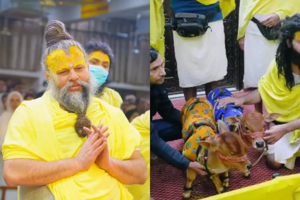 सोशल मीडिया पर एक वीडियो क्लिप तेजी से वायरल हो रहा है। वीडियो में गुरु प्रेमानंद महाराज (Premanand Maharaj) एक भक्त से शिष्टाचार भेंट करते नजर आ रहे हैं। इस दौरान गुरु प्रेमानंद महाराज भक्त द्वारा लाई गई दो छोटी-छोटी गाय को देखकर अवाक रह जाते हैं। भक्त कहते हैं कि “महाराज जी आपको दर्शन कराने लाए हैं। ये बछिया नहीं गाय है।” भक्त के इस बात को सुनकर प्रेमानंद महाराज अवाक रह जाते हैं। गुरु प्रेमानंद कहते हैं “ये गाय है, ये दूध देगी। हम समझ रहे थे नवजात बच्चा इतना होता है। चलिए गौ सेवा भी बन जाएगा और दूध भी देगी।”