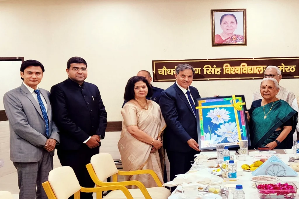 Anandiben Patel: उत्तर प्रदेश की महामहिम राज्यपाल आनंदीबेन पटेल ने चौधरी चरण सिंह विश्वविद्यालय में विभिन्न विश्वविद्यालयों एवं शिक्षण संस्थानों के कुलपति व अन्य पदाधिकारियों के साथ संवाद किया। स्वामी विवेकानन्द सुभारती विश्वविद्यालय के कुलपति मेजर जनरल डा.जी.के.थपलियाल ने संवाद कार्यक्रम में उत्तर प्रदेश की महामहिम राज्यपाल आनंदीबेन पटेल का अभिनंदन किया। उन्होंने महामहिम राज्यपाल को सुभारती फाइन आर्ट कॉलेज के विद्यार्थियों द्वारा बनाई गई पेंटिंग भेंट की।