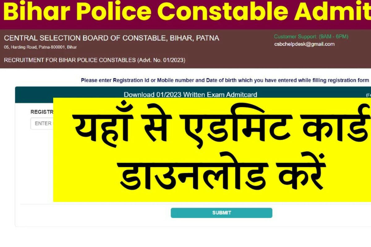 Bihar Police Admit Card: बिहार पुलिस कांस्टेबल भर्ती परीक्षा 2023 को लेकर बड़ी अपडेट सामने आई है। खबरों की मानें तो ‘सेंट्रल सिलेक्शन बोर्ड ऑफ कॉन्स्टेबल्स’ (CSBC) ने एडमिट कार्ड जारी जार दिया है। ऐसे में जिन भी छात्रों ने भर्ती परीक्षा आवेदन किया था, उन्हें आज हम बताएंगे की कैसे आपको एडमिट कार्ड को डाउनलोड करना है। साथ ही आपको यह भी बताएंगे की परीक्षा हॉल में जाने से पहले आपको किन बातों का ध्यान रखना है। आइए जानते हैं।