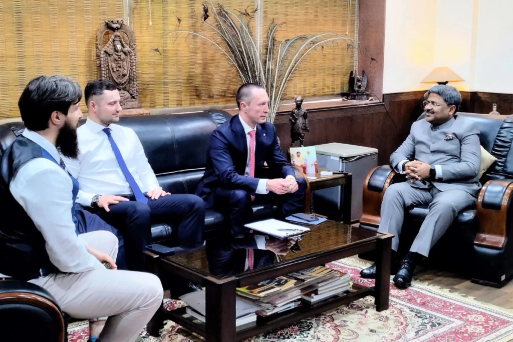 रूस के सबसे बड़े निजी विश्वविद्यालय, सिनर्जी यूनिवर्सिटी के संस्थापक डॉ. वादिम लोबोव के नेतृत्व में एक प्रतिनिधिमण्डल ने शोभित सम विश्वविद्यालय के कुलाधिपति कुँवर शेखर विजेंद्र से मुलाक़ात की। दोनों विश्वविद्यालयों द्वारा शिक्षा, नवाचार, और अनुसंधान के क्षेत्र में आपसी सहयोग की संभावनाओं पर चर्चा की गई। भारत में स्कोल्कोवो इनोवेशन सेंटर के मुख्य प्रतिनिधि श्री मिखाइल गुसेव एवम् शोभित विश्वविधालय के वरिष्ठ निदेशक श्री देवेंद्र नारायण भी चर्चा में शामिल हुए।