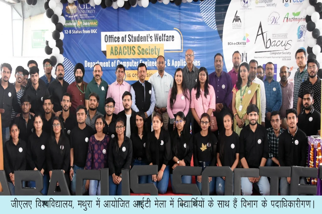 GLA University: जीएलए विश्वविद्यालय, मथुरा के कंप्यूटर इंजीनियरिंग एंड एप्लीकेशन विभाग के अंतर्गत एक दिवसीय आईटी मेला का आयोजन किया गया। इस मेले में का मुख्य उद्देश्य नवीनतम तकनीकों से विद्यार्थियों को अवगत कराना तथा इन तकनीकों को प्रोजेक्ट्स के माध्यम से विकसित करके दर्शाना था। मेले का शुभारम्भ विश्वविद्यालय के कुलपति प्रो. फाल्गुनी गुप्ता, प्रतिकुलपति प्रो. अनूप कुमार गुप्ता, डीन-एकेडेमिक्स प्रो. आशीष शर्मा, न्यूजेन आईइडीसी के चीफ कोऑर्डिनेटर प्रो. मनोज कुमार तथा डीन-कंप्यूटर इंजीनियरिंग एंड एप्लीकेशनस प्रो. अशोक भंसाली ने मां सरस्वती तथा प्रेरणास्तोत्र स्व. श्री गणेशीलाल अग्रवाल जी के चित्रपट के समक्ष दीप प्रज्वलित कर किया।