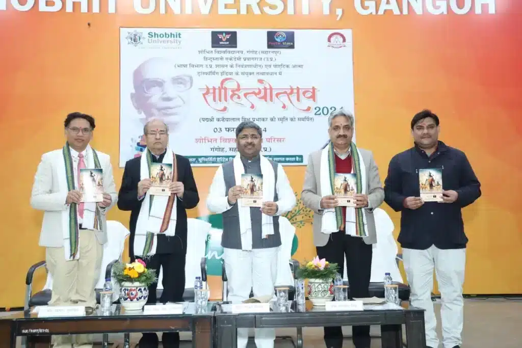 Shobhit University Gangoh: शोभित विश्वविद्यालय गंगोह में आज दिन शनिवार को हिंदुस्तानी एकेडेमी उ. प्र., प्रयागराज (भाषा विभाग उ. प्र. शासन के नियंत्रणाधीन), पोएटिक आत्मा ट्रांस्फ़ॉर्मिंग इंडिया एवं ‘विरासत’ यूनिवर्सिटी हेरिटेज रिसर्च सेंटर, शोभित विश्वविद्यालय, गंगोह (सहारनपुर) के संयुक्त तत्वावधान में सहारनपुर के प्रसिद्ध साहित्यकार पद्मश्री कन्हैयालाल मिश्र प्रभाकर की स्मृति में साहित्योत्सव 2024 के उद्घाटन समारोह का आयोजन किया गया।