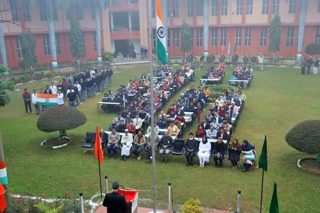 Shobhit University Gangoh: शोभित विश्वविद्यालय, गंगोह में आज दिनांक 26 जनवरी को 74 वां गणतंत्र दिवस मनाया गया। इस राष्ट्रीय पर्व का प्रारम्भ संस्था के कुलपति, प्रो०(डॉ.) रणजीत सिंह जी द्वारा ध्वजारोहण करके किया गया। ध्वजारोहण के साथ ही विश्वविद्यालय के सभी सुरक्षा कर्मियों ने राष्ट्रीय ध्वज को सलामी दी और राष्ट्रगान गया।इस पावन-पर्व के अवसर पर संस्था के कुलपति, प्रो०(डॉ.) रणजीत सिंह ने बाबू जी को याद करते हुए अपने उद्बोधन में कहा कि एक राष्ट्र के निर्माण के लिए सभी को एकजुट होकर छोटे-छोटे कार्यों से प्रेरणा लेनी होगी और प्रत्येक को अपनी-अपनी जिम्मेदारियां निभानी एवं समझनी होगी, तभी यह संभव है कि हम एक सुनहरे कल का निर्माण कर सकेंगे। उन्होंने आगे कहा कि जिन वीर जवानों की शहादत की वजह से आज हम खुली हवा में सांस ले रहे हैं, उनको कोई भुला नहीं सकता।
