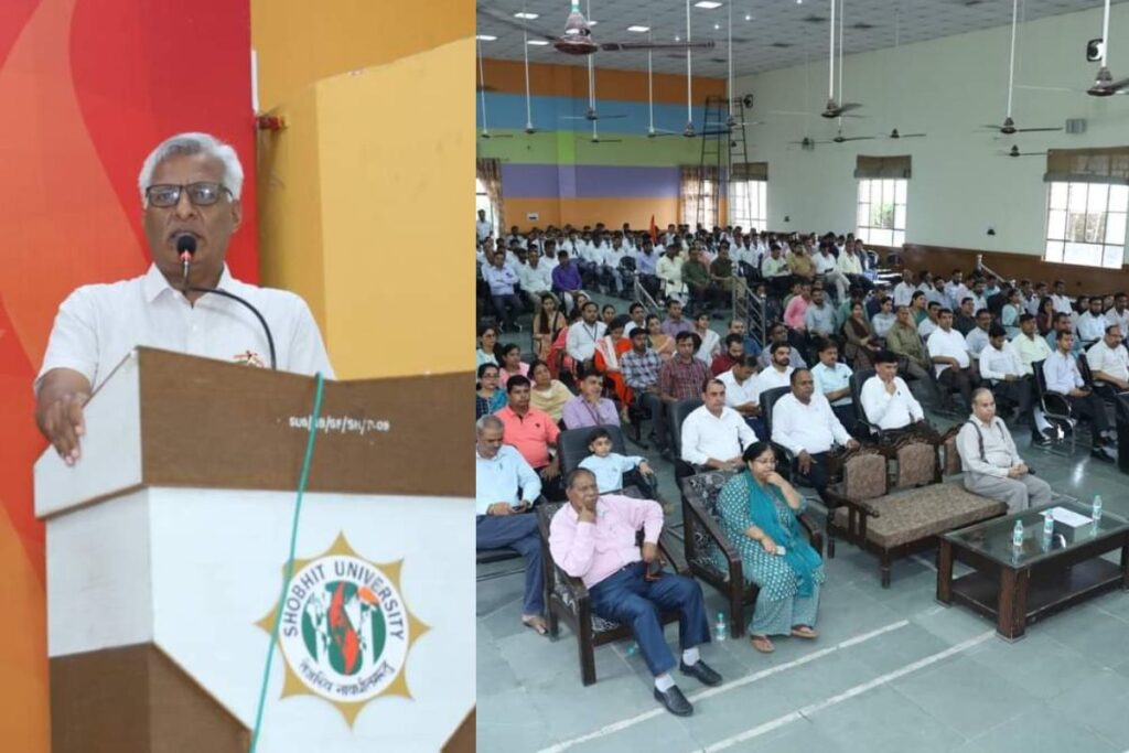 Shobhit University Gangoh: शोभित विश्वविद्यालय, गंगोह में आज दिनांक 15 अगस्त को आजादी के अमृत महोत्सव के अंतर्गत 77वां स्वतंत्रता दिवस मनाया गया। इस वर्ष स्वतंत्रता दिवस की थीम “नेशन फर्स्ट ऑलवेज फर्स्ट” रही। आजादी के अमृत महोत्सव के अंतर्गत मनाये गए इस राष्ट्रीय पर्व का प्रारंभ शोभित विश्वविद्यालय, गंगोह के कुलपति, प्रो०(डॉ.) रणजीत सिंह जी द्वारा ध्वजारोहण करके किया गया। ध्वजारोहण के साथ ही विश्वविद्यालय के सभी सुरक्षा कर्मियों ने राष्ट्रीय ध्वज को सलामी दी और राष्ट्रगान गाया।